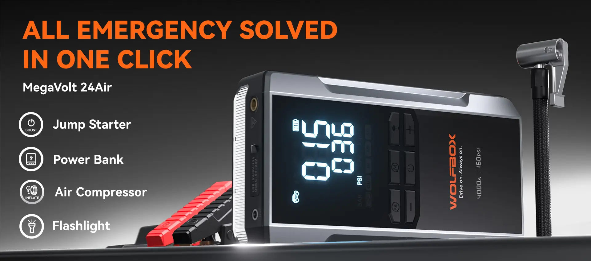 Jump Starter with Air Compressor Tire Inflator | Wolfbox MegaVolt 24Air