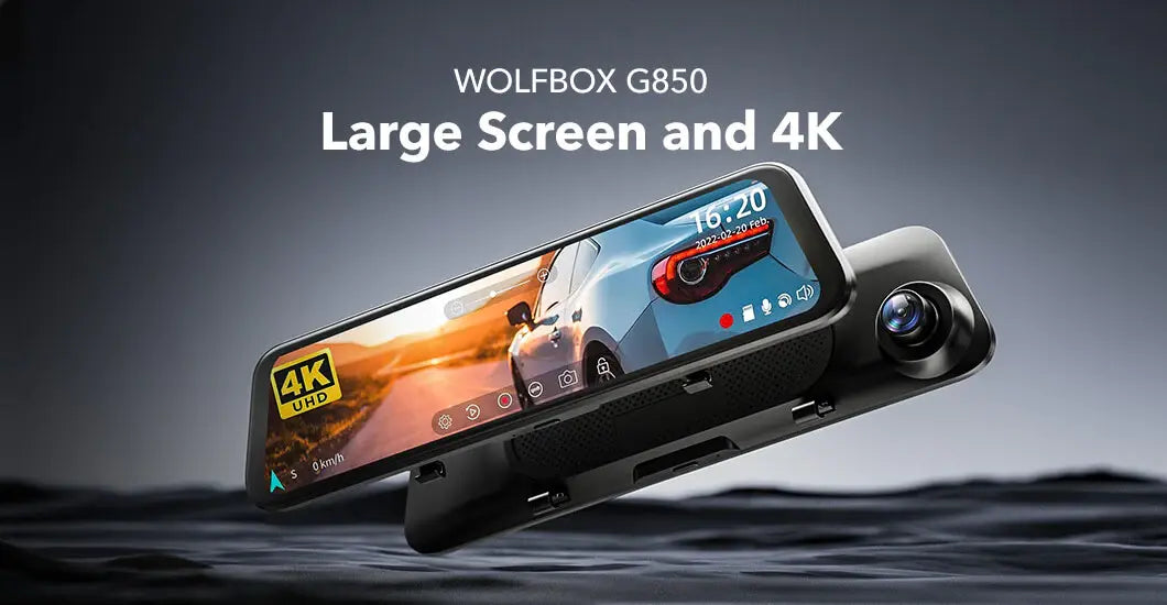 Equipped with 12-inch 4K mirror front camera and WDR rear camera, bringing super clear and smooth video experience, helps you read the key details like road signs, and vehicle number plates and offers better-defined details. G850 dash cam 4K mirror combines WOLFBOX's most advanced technology and takes into account the high-cost performance.