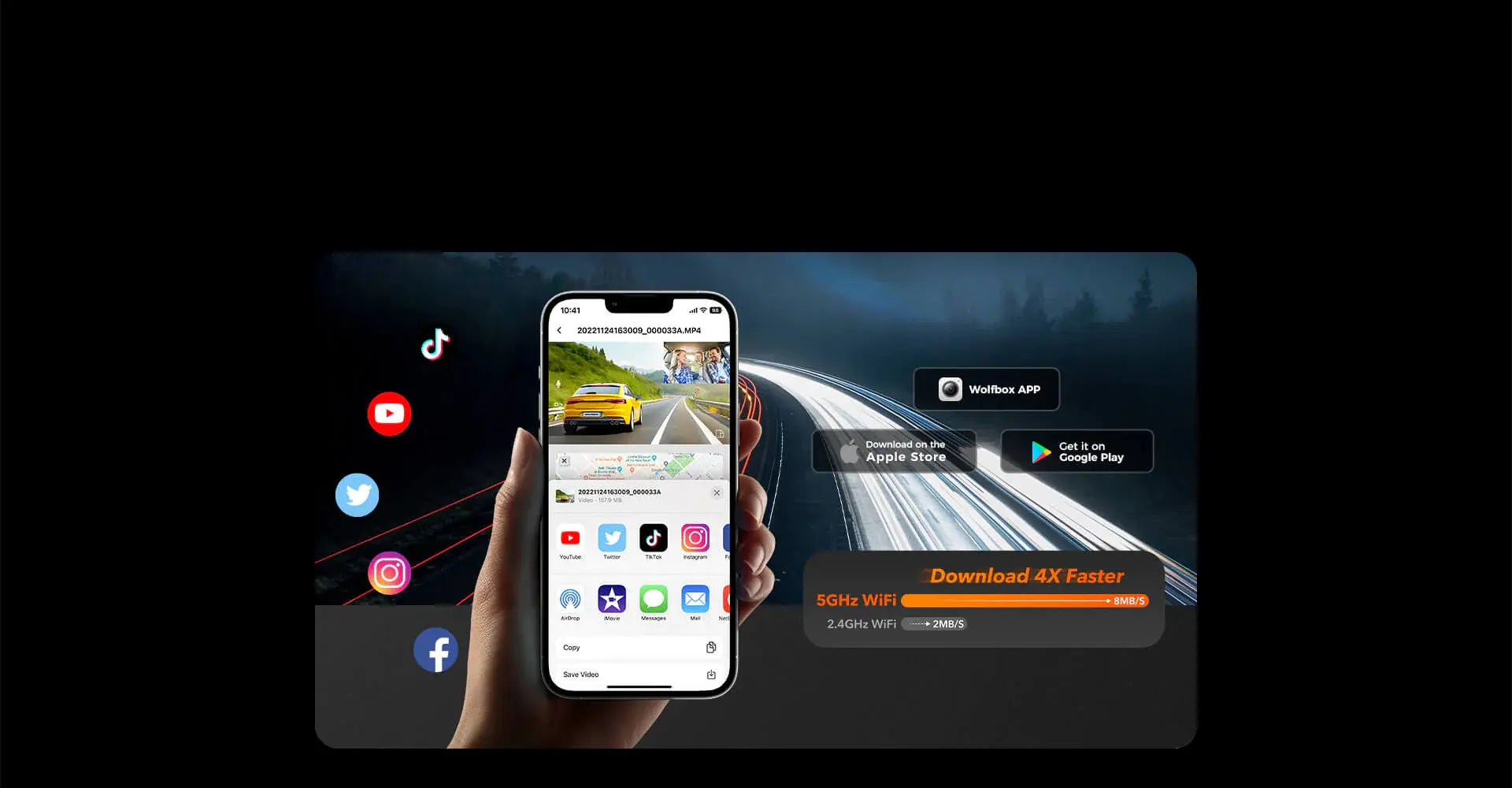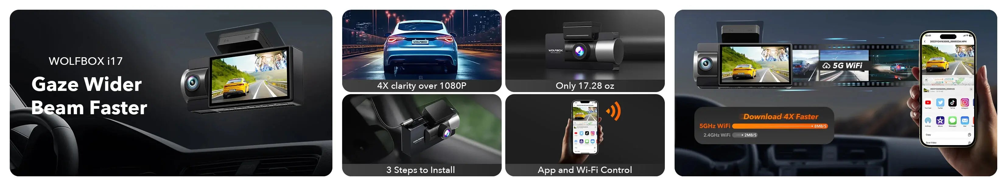 WOLFBOX i17 4K+2.5K 5G WiFi Super IR Night Vision Dash Cam